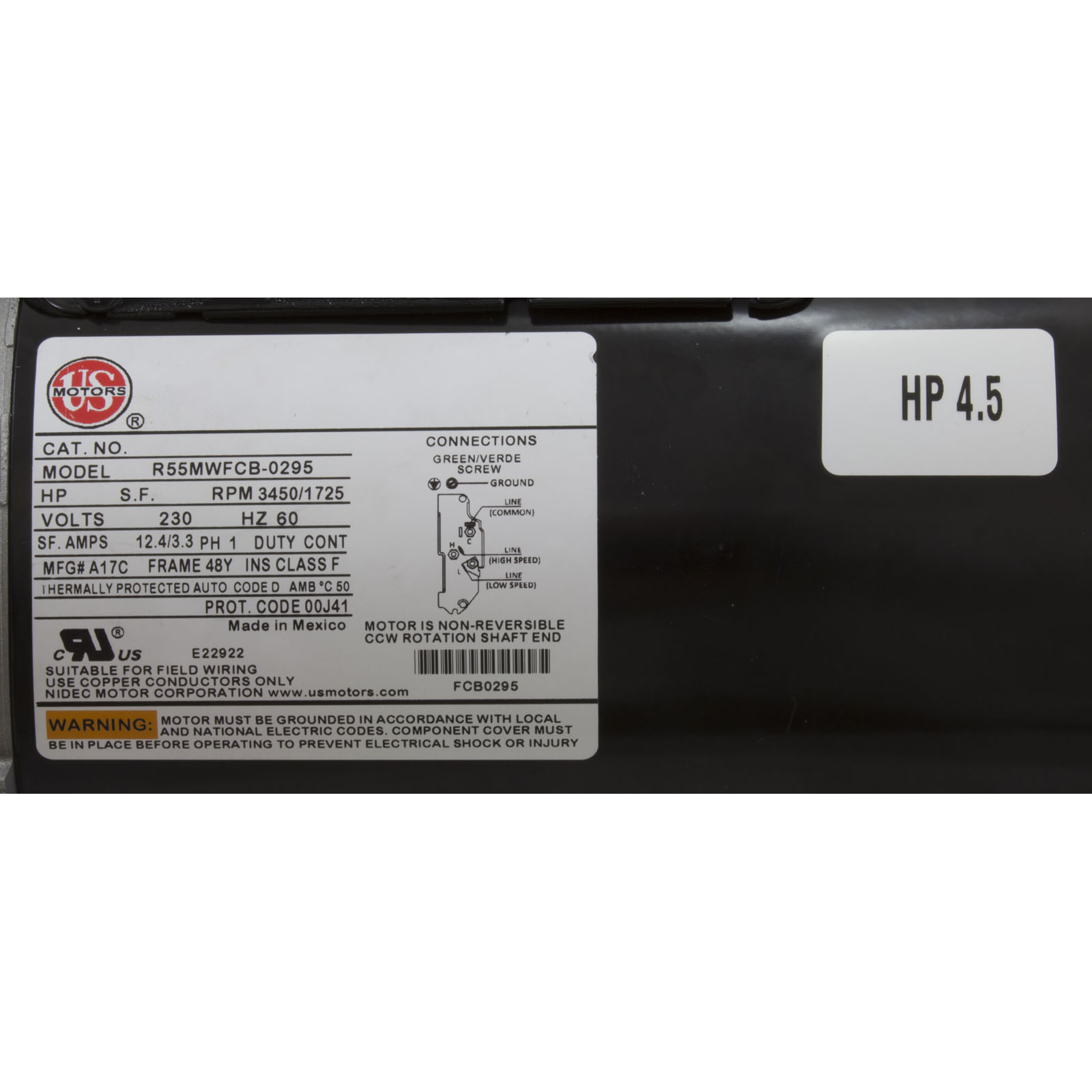 3421821-13HZN Pump WW Exec 4.0hp USMotor 230v 2-Spd 48fr 2-1/2