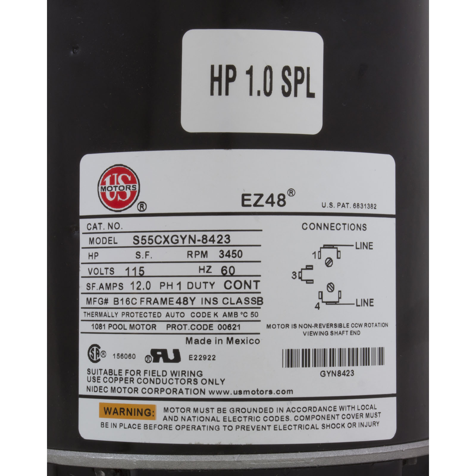 35-184-1010w - Motor, US Motor/WW, 1.0SPL, 115v, 1-Speed, 48 Frame