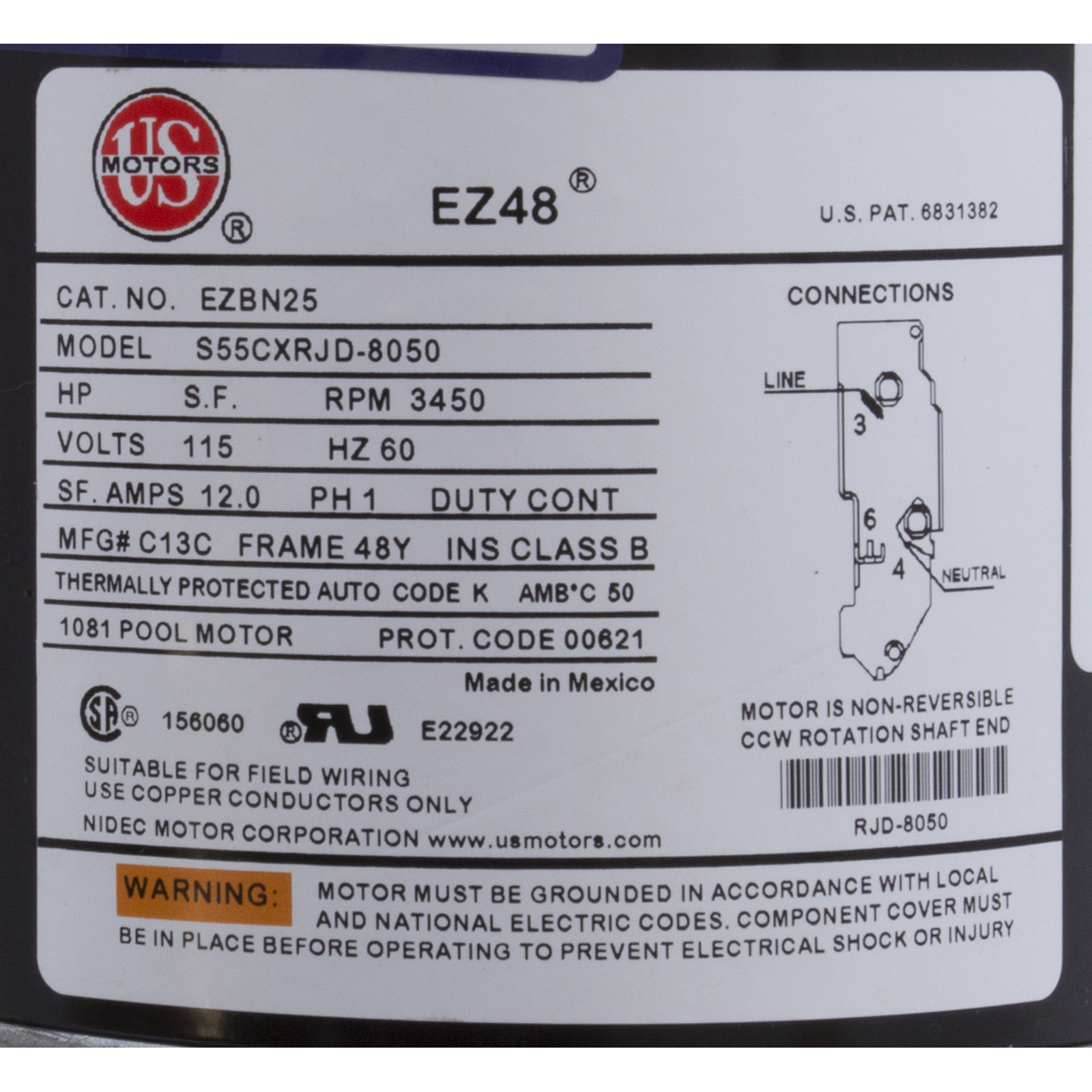 3410410-0Z Pump WW Spa Flo 1.0SPL 115v 1-Spd 48fr 1.5