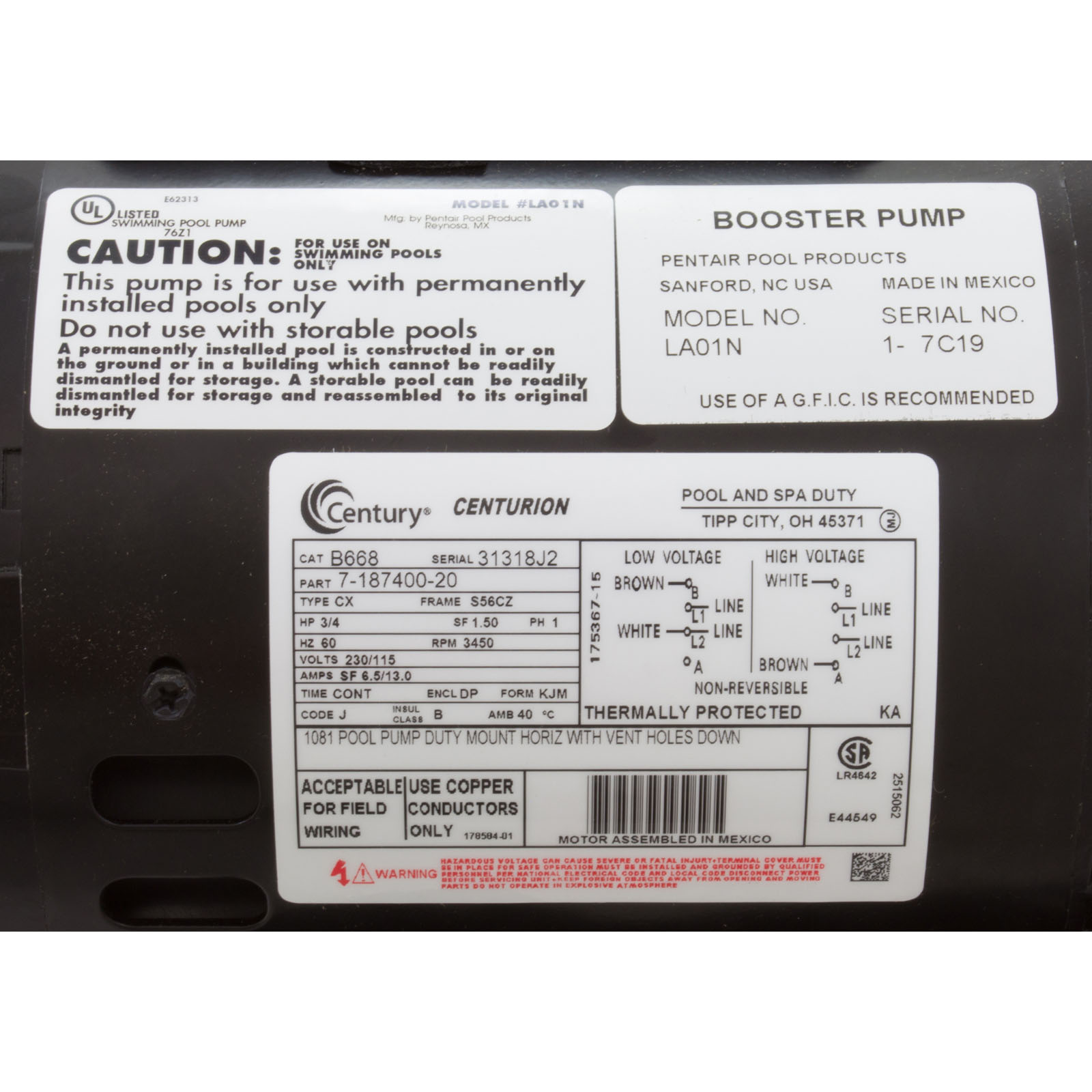 LA01N PumpBoosterPentair Letro0.75hp115v/230vOEM
