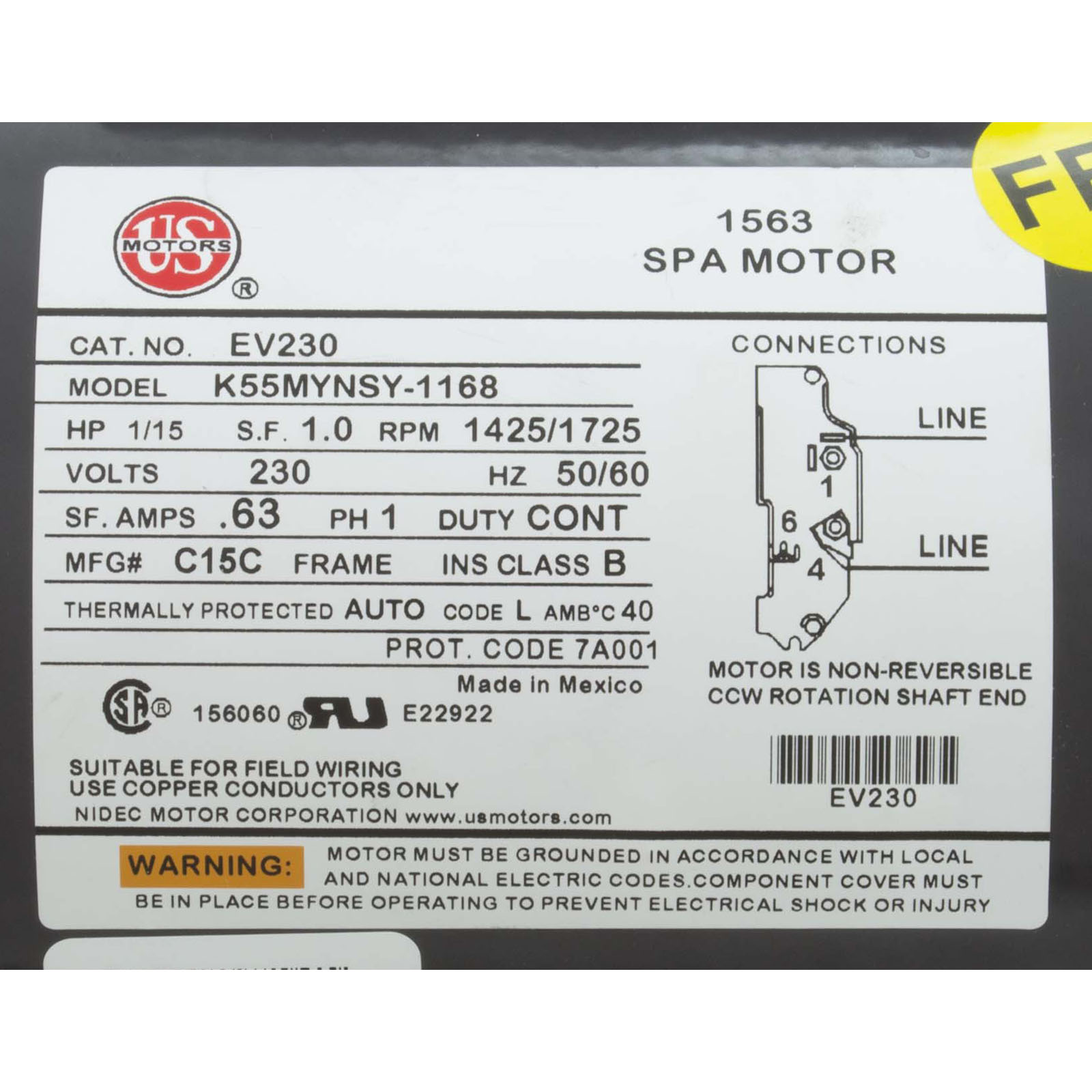 PRC1168 PumpCircPower-Right1/15hp230v1-Spd48frOEM