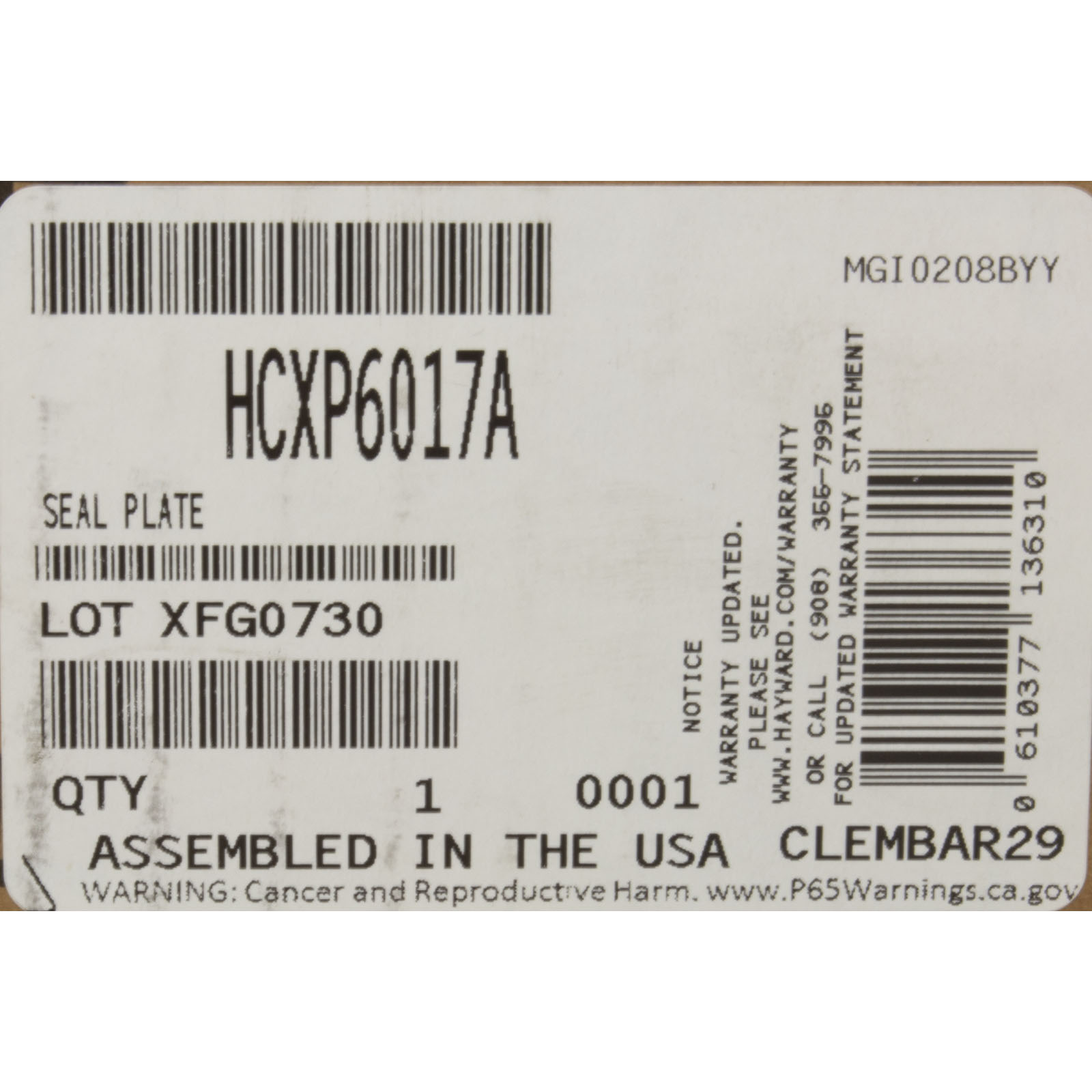 HCXP6017A Seal Plate Hayward HCP