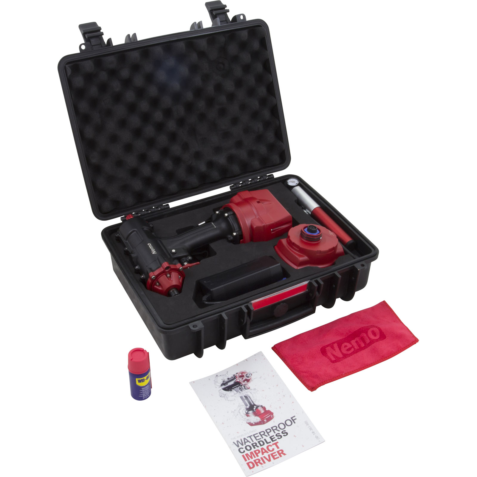 The Nemo Impact Driver has a maximum operating depth of 164ft. It has a salt-water resistant black and red paint job and comes with: