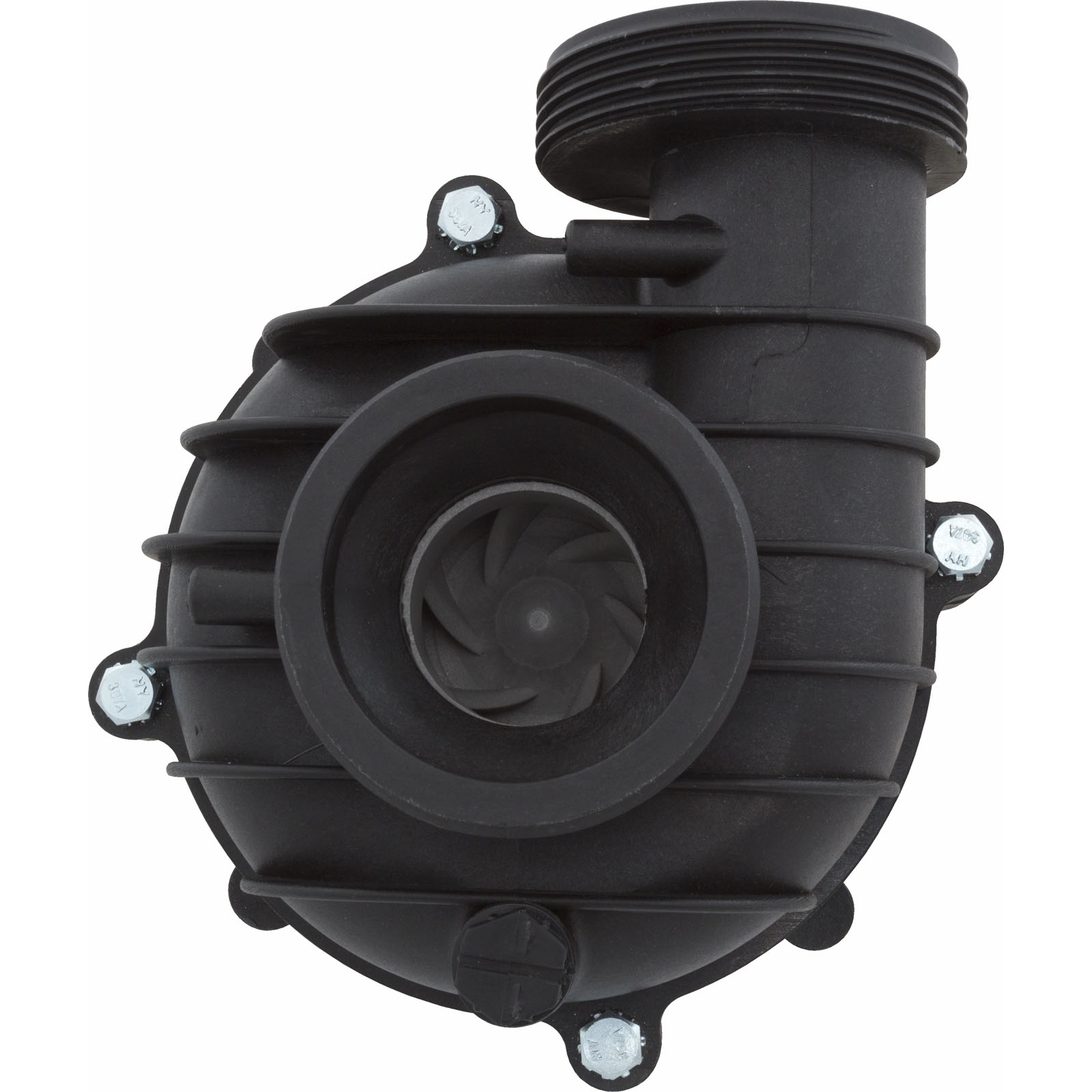Side discharge, 2"mbt, 56 frame Power Right spa pump wet end for the 2.5hp 56 Frame PRC504. The PRWET504 wet end is the larger version which uses 5 bolts to keep the suction housing together. Please count the bolts on your wet end to makes sure this is the correct wet end for your application. The complete wet end includes: the volute, seal, impeller, wear ring, volute o-ring, sealplate and bolt kit.