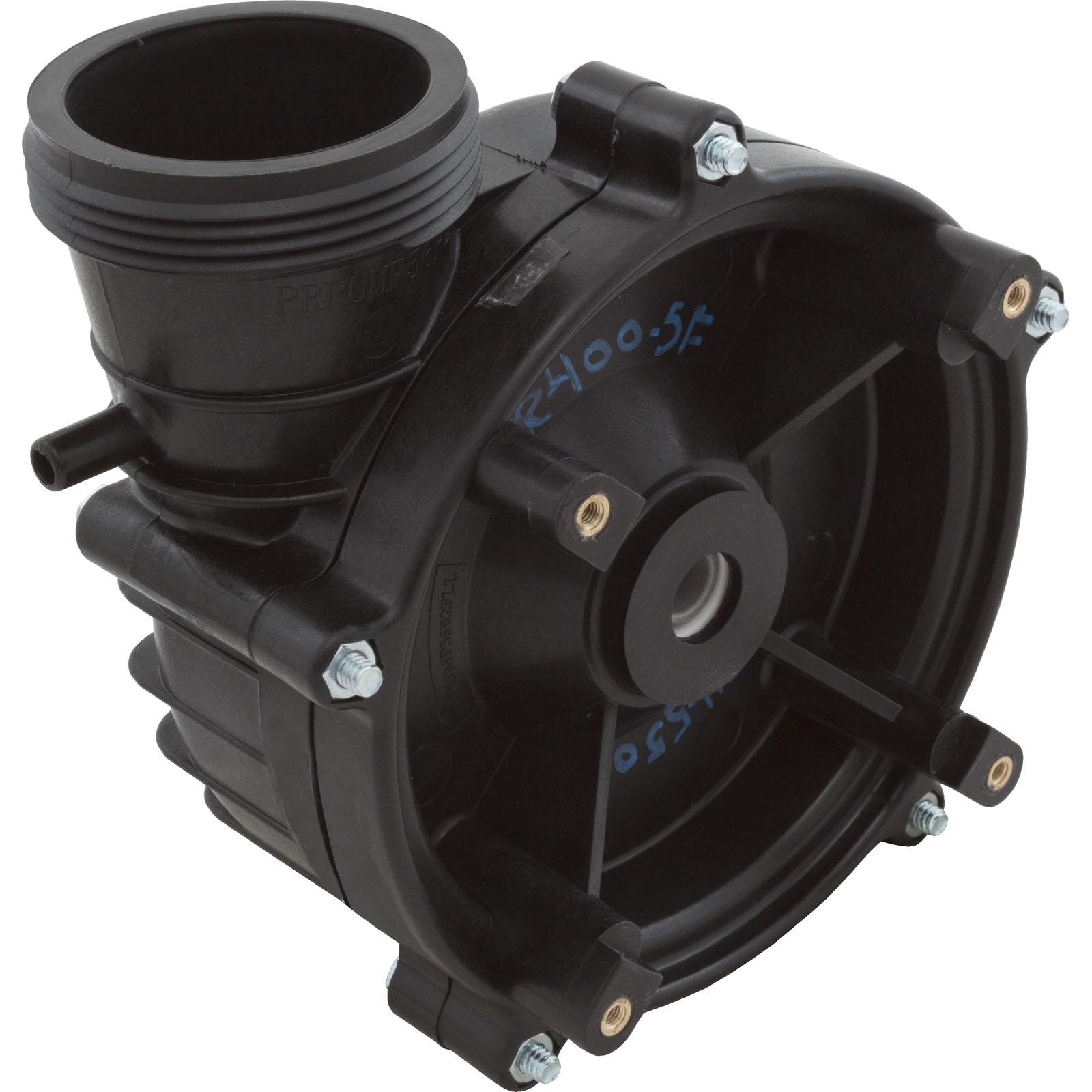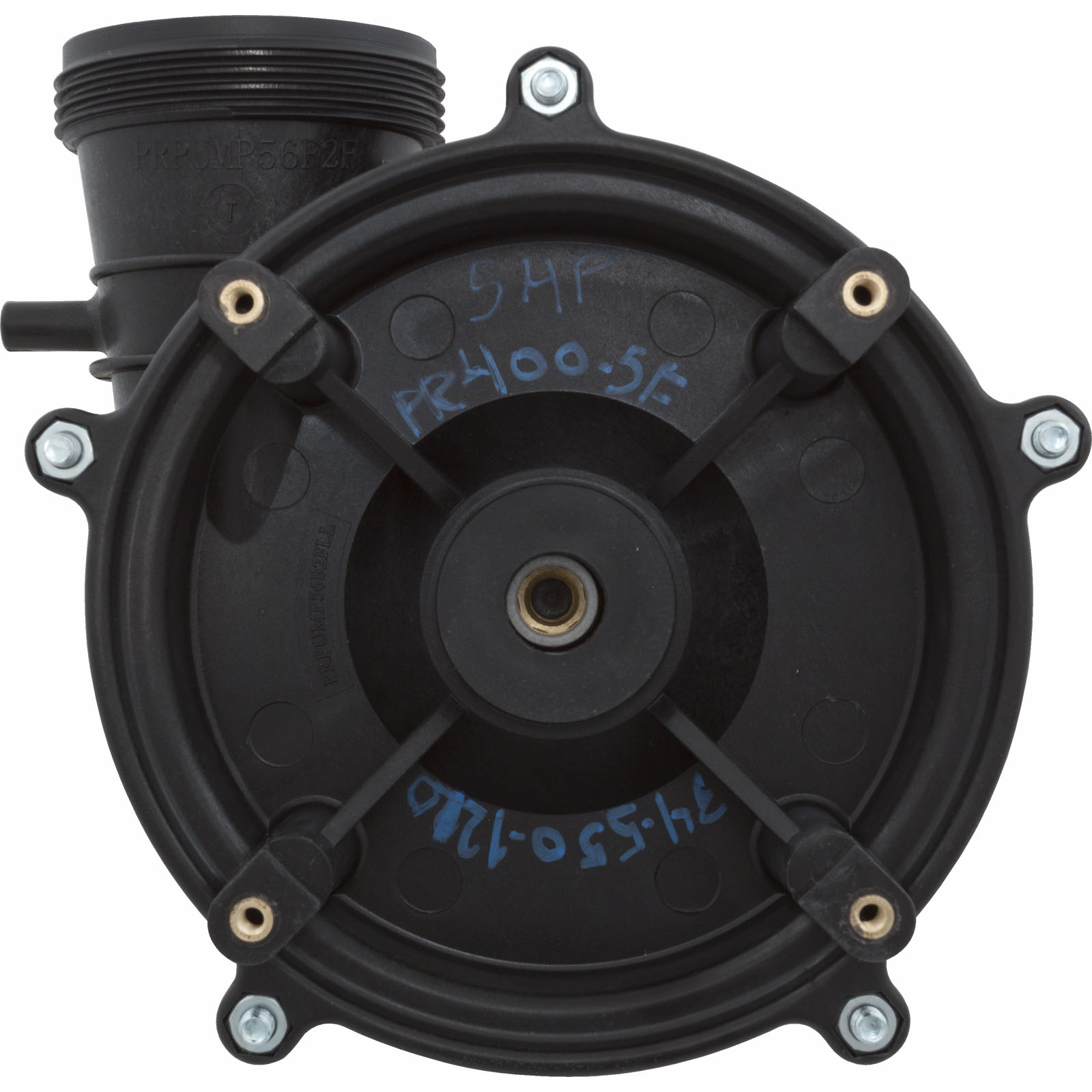 Side discharge, 2"mbt, 56 frame Power Right spa pump wet end for the 5.0hp 56 Frame PRC9089X. The PRWET5 wet end is the larger version which uses 5 bolts to keep the suction housing together. Please count the bolts on your wet end to makes sure this is the correct wet end for your application. The complete wet end includes: the volute, seal, impeller, wear ring, volute o-ring, sealplate and bolt kit.