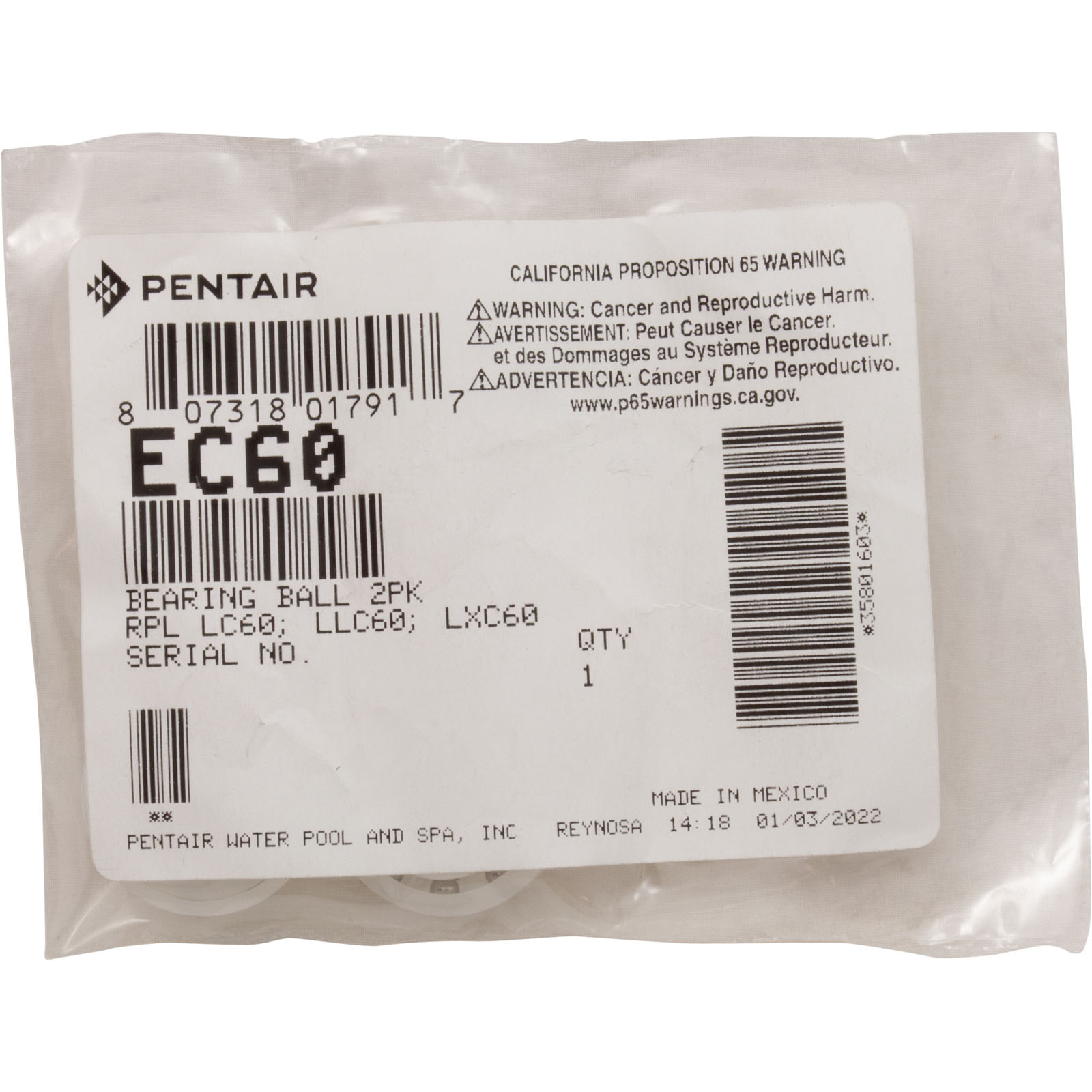 EC60 Wheel Bearing Pentair Letro Legend Cleaners Quantity 2